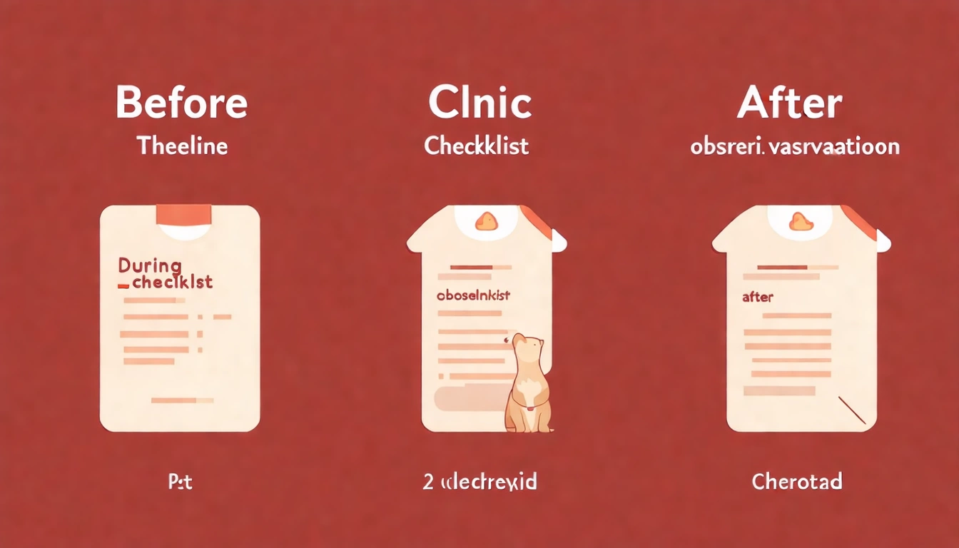 - 問診 — 告知獸醫最近有沒有異常(食慾、精神、排便)